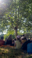 Spectacle sonorisé : prévoir un accès électrique (1 prise 220v) au pied de l’arbre pour sono 200w. Possibilité autonomie sur batterie.